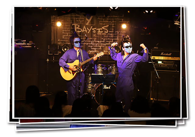 人類の笑顔と感動、茨城の振興と発展を目的として結成されたVo.サンパウロ岡澤とGt.ゲッツー!鈴木から成るエンターテイメントユニット。地方出身者の心情をエレジーで唄い切った『出られなくて新宿』で第18回itadakiGPを見事に制覇!!